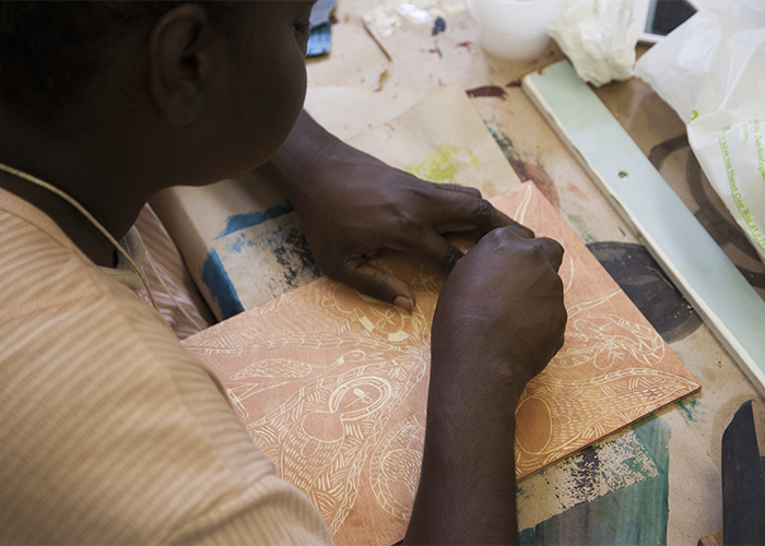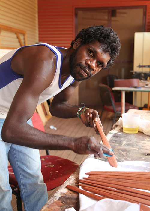 Here, the artists are trained in the technical preparation of materials to a best practice standard. Throughout the year, the workshop hosts a range of creative and technical training opportunities, including pearl shell or wood carving.